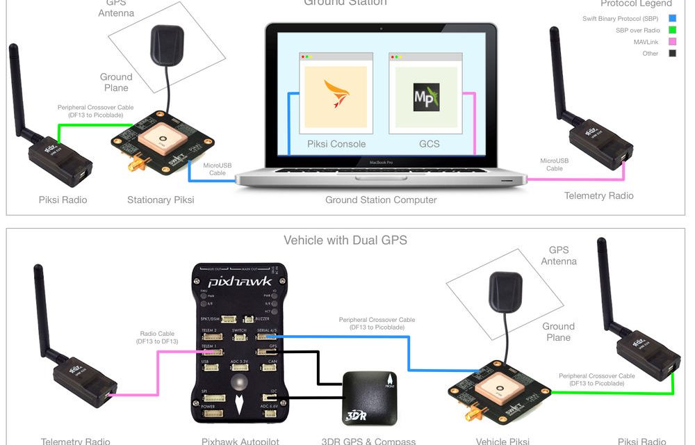 이 포스팅은 Pixhawk에 GPS 를 2개 장착하는 내용을 제공합니다. 사용된 2nd GPS는 cm수준의(5cm) 포지셔닝 정확도를 가진 Swift Navigation 의 RTK제품입니다.