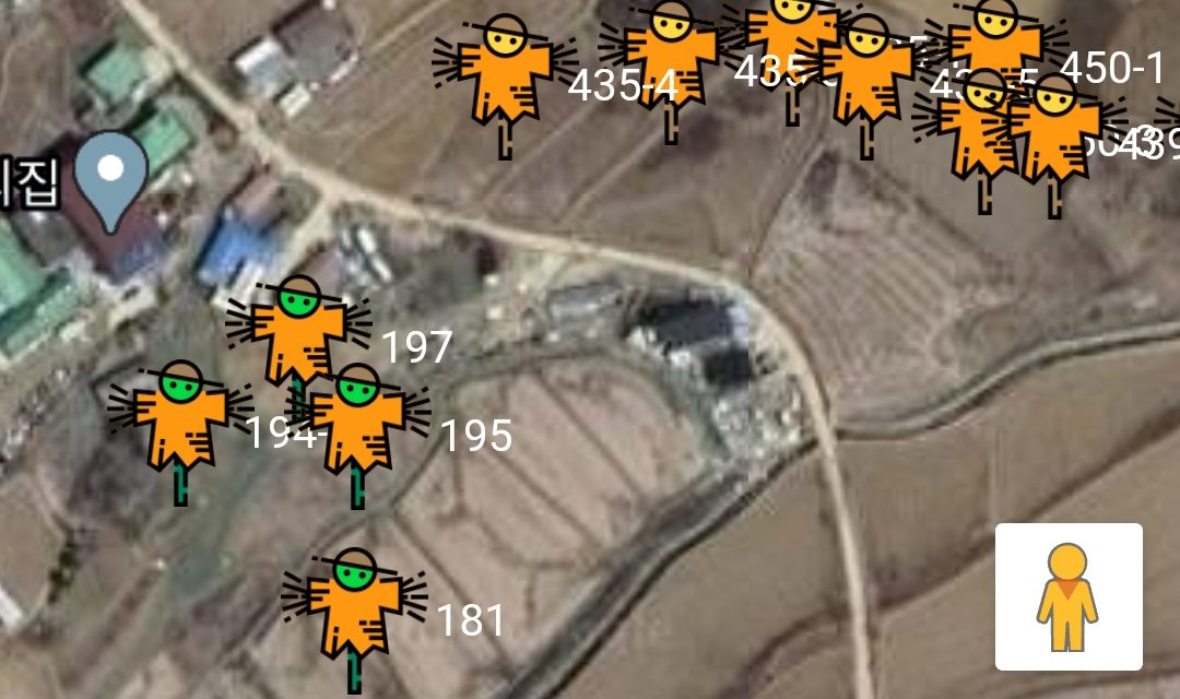 거기서 2시방향 위로 435-5, 435-3, 435-1번지도 친환경논인데요, 일반논과 섞여 있습니다. 녹색 얼굴 허수아비로 친환경 논임을 표시할 수 있습니다.